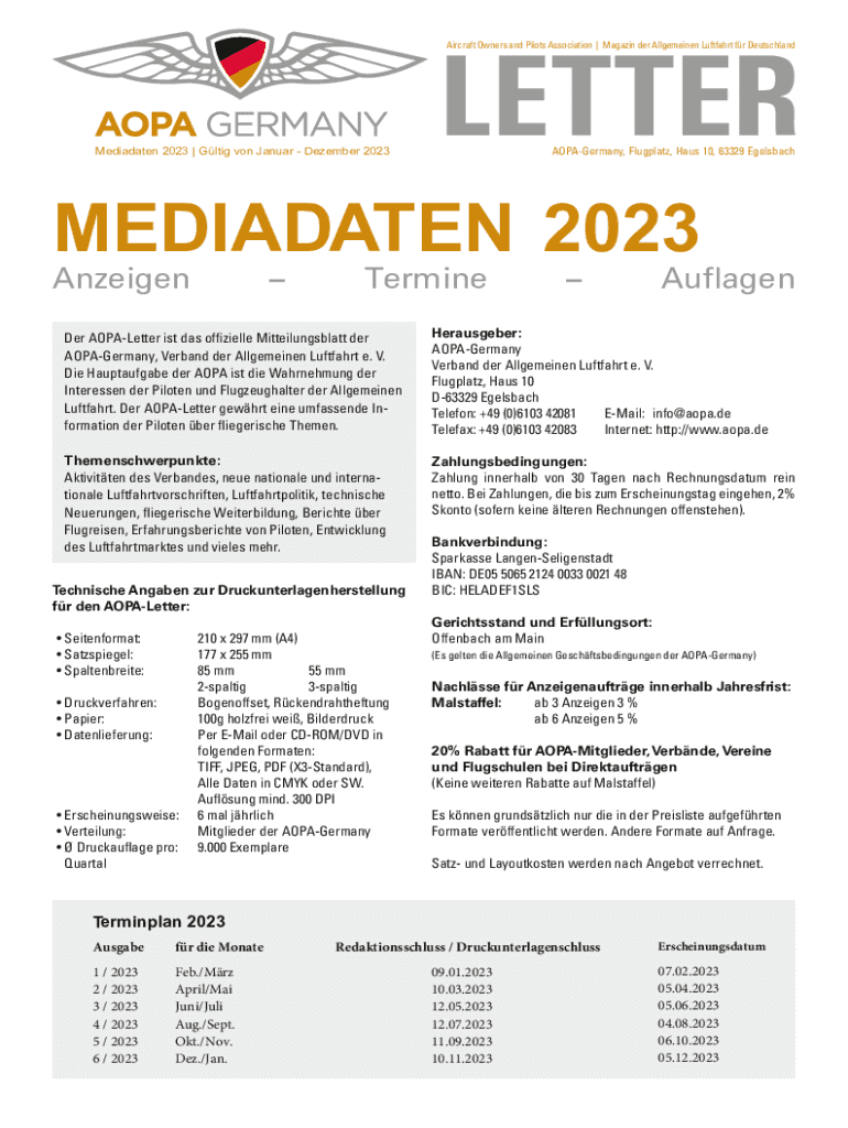 Get, Create, Make and Sign aopade aopa-lettermediadaten2023-1aopa-germany flugplatz haus