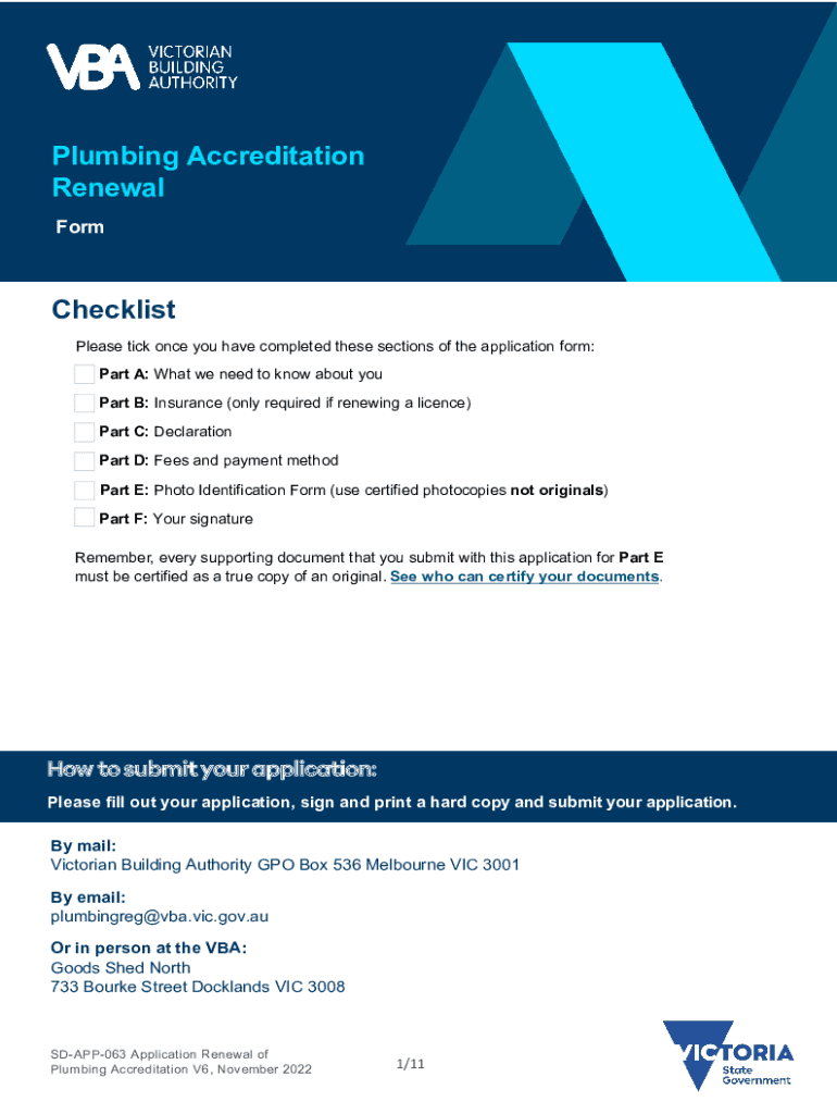 Plumbing Accreditation Renewal FormChecklist Please tick once you have completed these sections of the application form: Part A: What we need to know about you Part B: Insurance (only required if