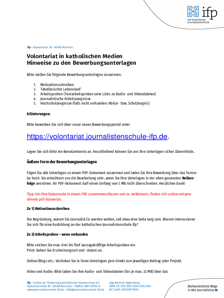 Get the free Bewerbung fr ein Volontariat: Darauf kommt es an