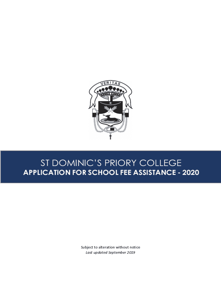 ST DOMINIC PRIORY COLLEGE APPLICATION FOR SCHOOL FEE ASSISTANCE 2020Subject to alteration without notice Last updated September 2019ST DOMINIC PRIORY COLLEGE | APPLICATION FOR SCHOOL FEE ASSISTANCE