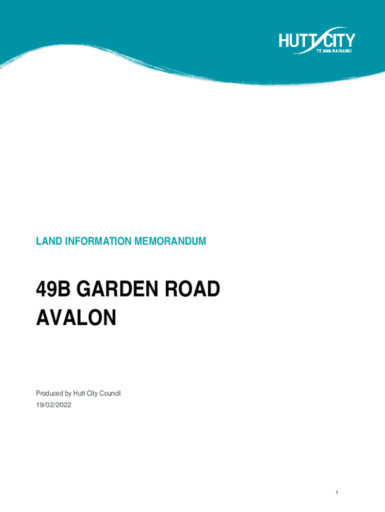 LAND INFORMATION MEMORANDUM49B GARDEN ROAD AVALONProduced by Hunt City Council 19/02/20221Reference: LIM211284L A Gilbert 49 B Garden Road AVALON 5011 Dear Linda Ann Gilbert, Land information memorandum