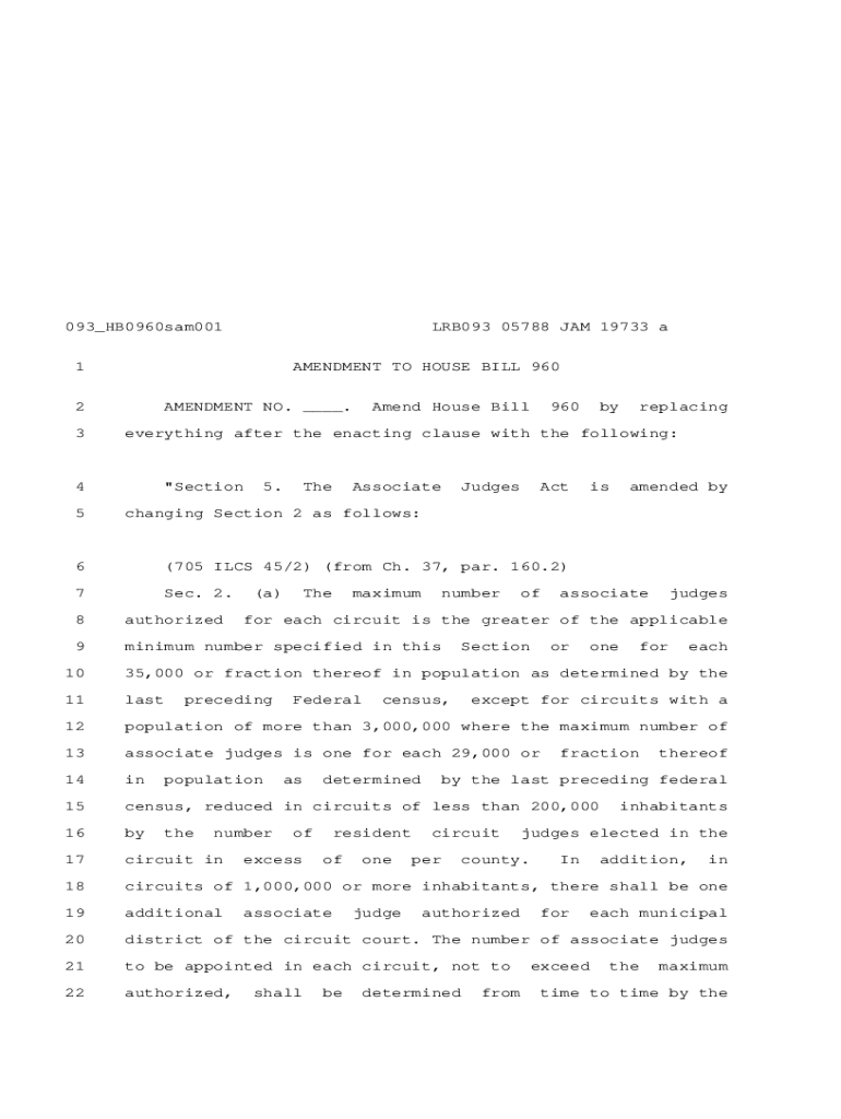 093_HB0960sam001LRB093 05788 JAM 19733 a1AMENDMENT TO HOUSE BILL 9602 3AMENDMENT NO. ___.960byreplacingeverything after the enacting clause with the following:4 5Amend House Bill\” Section5. TheAssociateJudgesActisamended