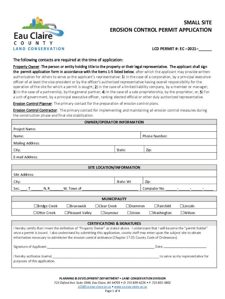 Get the free SMALL SITE EROSION CONTROL PERMIT APPLICATION