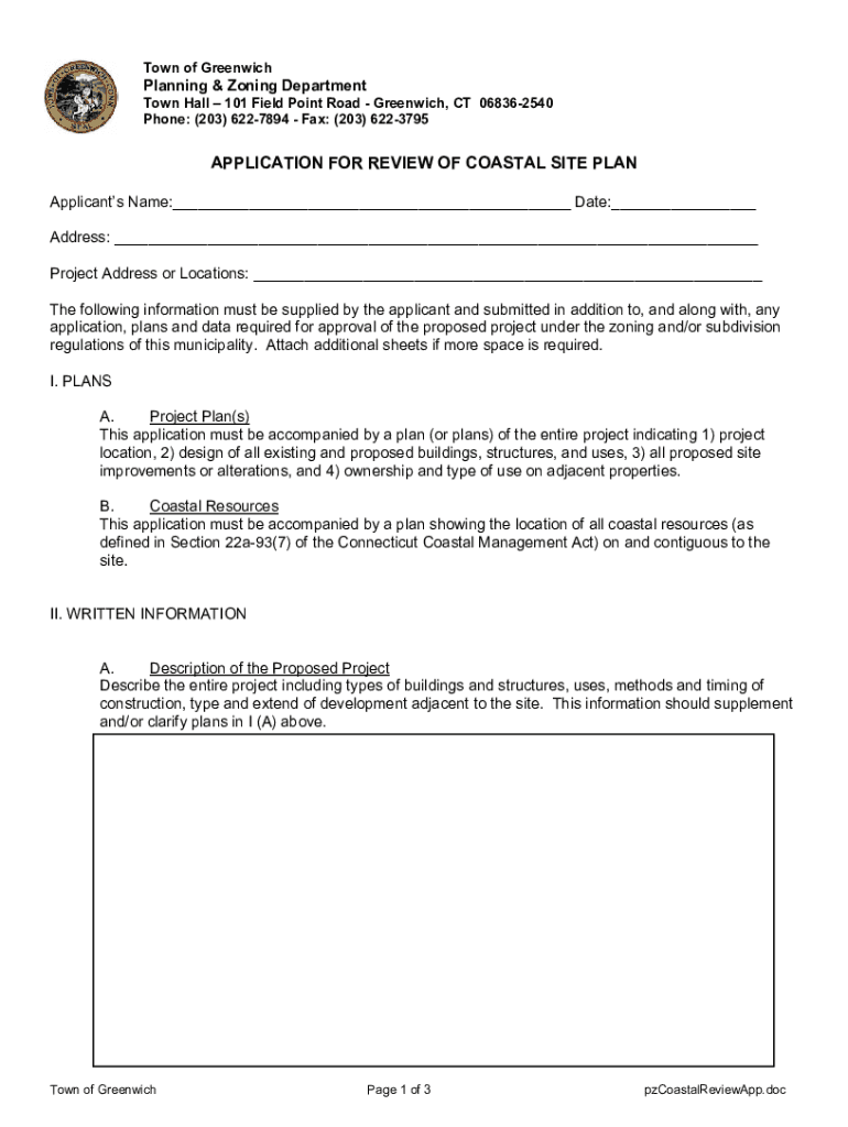 Town of Greenwich Planning & Zoning Department Town Hall 101 Field Point Road, Greenwich, CT 06830 Phone: (203)6227894 Fax: (203)6223795SITE PLAN ADMINISTRATIVE FORM Property Address: ___ Tax Account