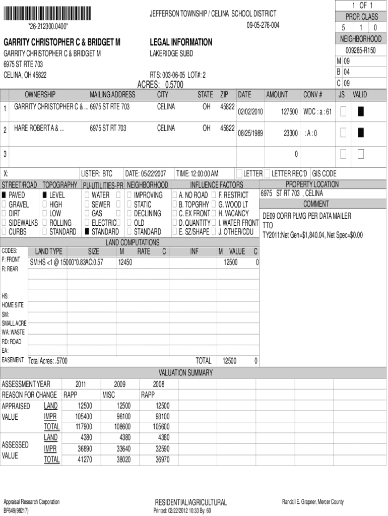 Get the free GARRITY CHRISTOPHER C & BRIDGET M LEGAL ... - www2 mercercountyohio