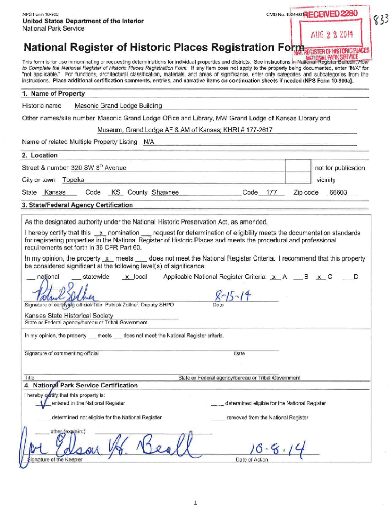 Get the free NPS Form 10-900 0MB No. 1024-0018 1 United States Department of the ...
