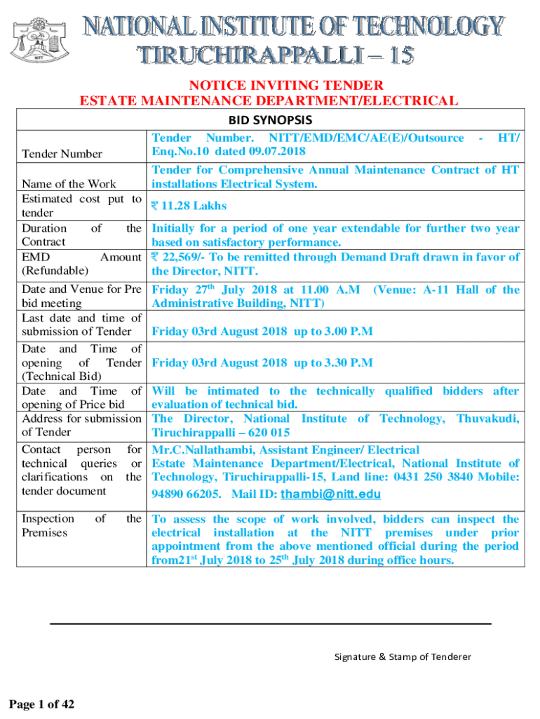 Get the free Notice Inviting Tender Estate Maintenance Department/Electrical Tender ...