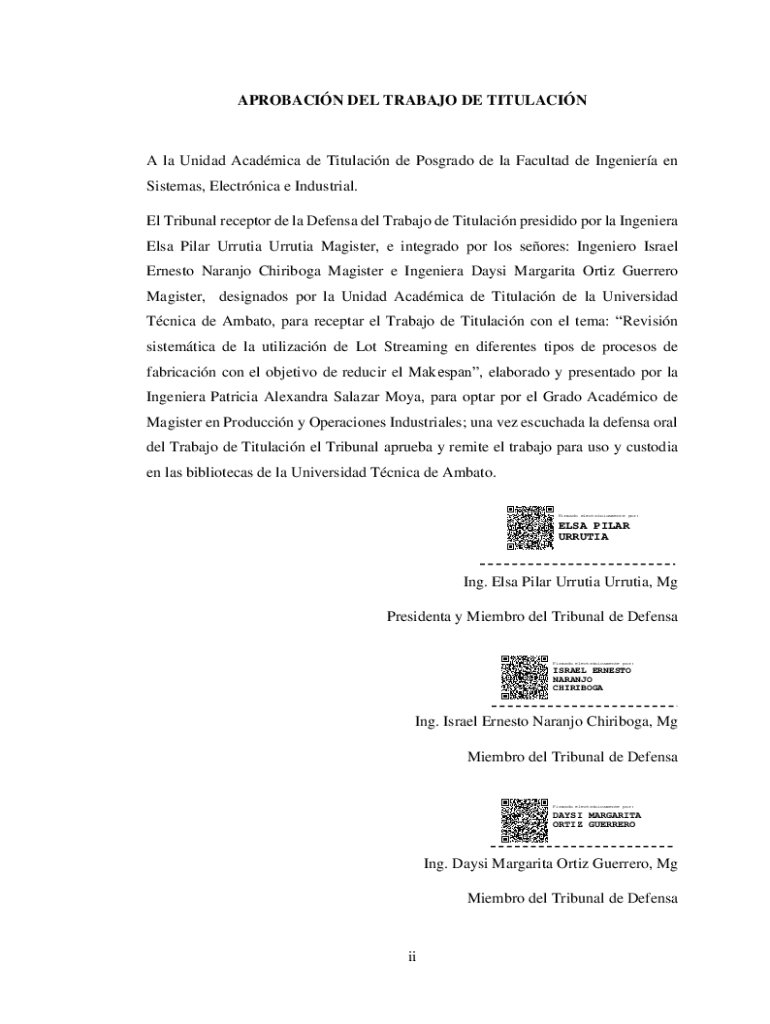 UNIVERSITY TCN ICA DE AMBATOFACULTAD DE GENERA EN SYSTEMS, ELECTRONICA E INDUSTRIALMAESTRIA EN PRODUCTION Y OPERATIONS INDUSTRIALESTema: REVISION SYSTEMATIC DE LA UTILIZATION DE LOT STREAMING EN DIFFERENCES