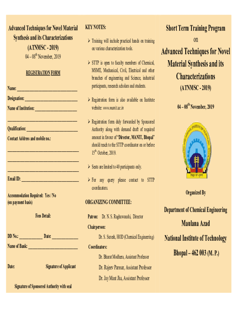 Advanced Techniques for Novel Material Synthesis and its Characterizations (ATN MSC 2019)keynotes: Training will include practical hands-on training on various characterization tools.04 08th November