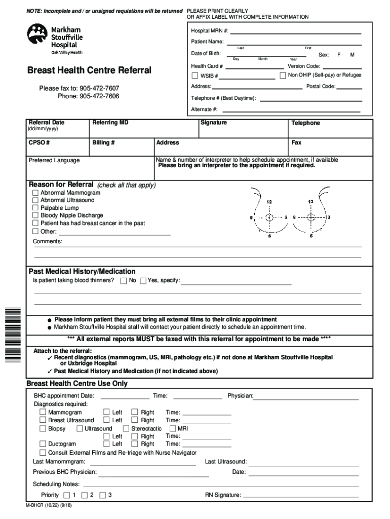 NOTE: Incomplete and / or unsigned requisitions will be returned PLEASE PRINT CLEARLY OR AFFIX LABEL WITH COMPLETE INFORMATION Hospital MAN #: Patient Name: LastFirstDate of Birth: Health Card #Breast
