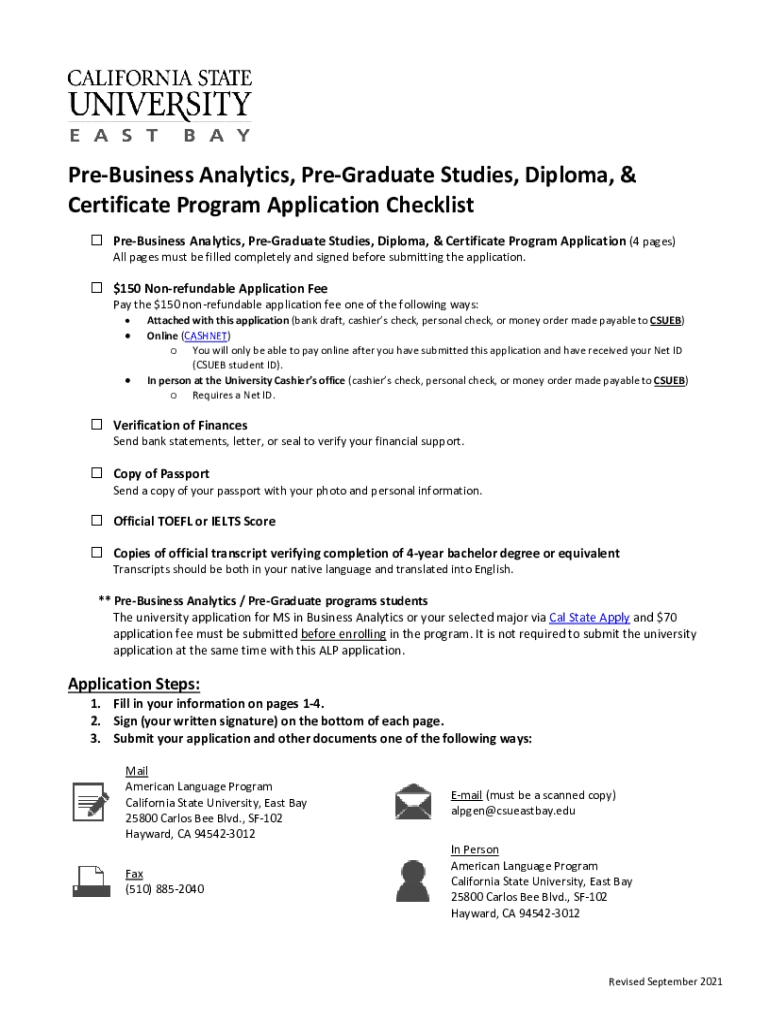 Business Analytics, Graduate Studies, Diploma, & Certificate Program Application Checklist Business Analytics, Graduate Studies, Diploma, & Certificate Program Application (4 pages) All pages must