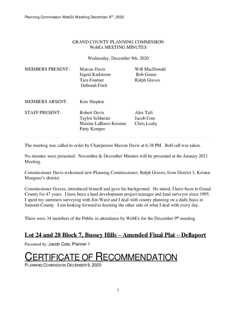 Planning Commission WebEx Meeting December 9th, 2020GRAND COUNTY PLANNING COMMISSION