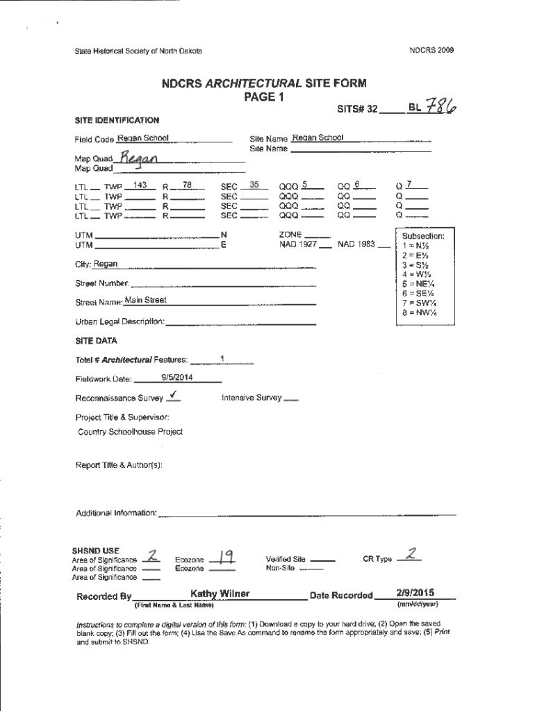 Get the free NDCRS ARCHITECTURAL SITE FORM PAGE 1 SITS# 32 ML SITE IDENTIFICATION