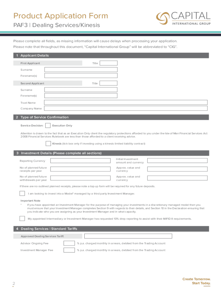 Application Form PAF3 | Dealing ServicesPlatform | Investment | Byproduct Application Form PAF3 | Dealing Services/KinesisPlease complete all fields, as missing information will cause delays when