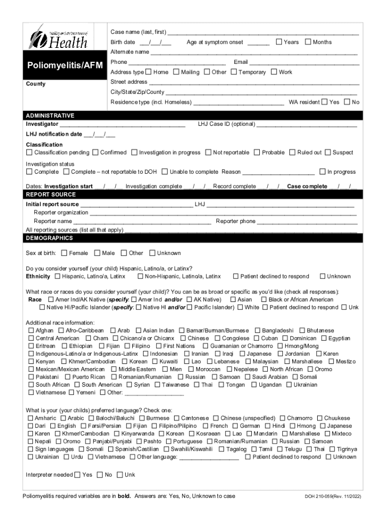 Get the free doh.wa.gov sites defaultReporting Form For Poliomyelitis/AFM - doh.wa.gov - doh wa