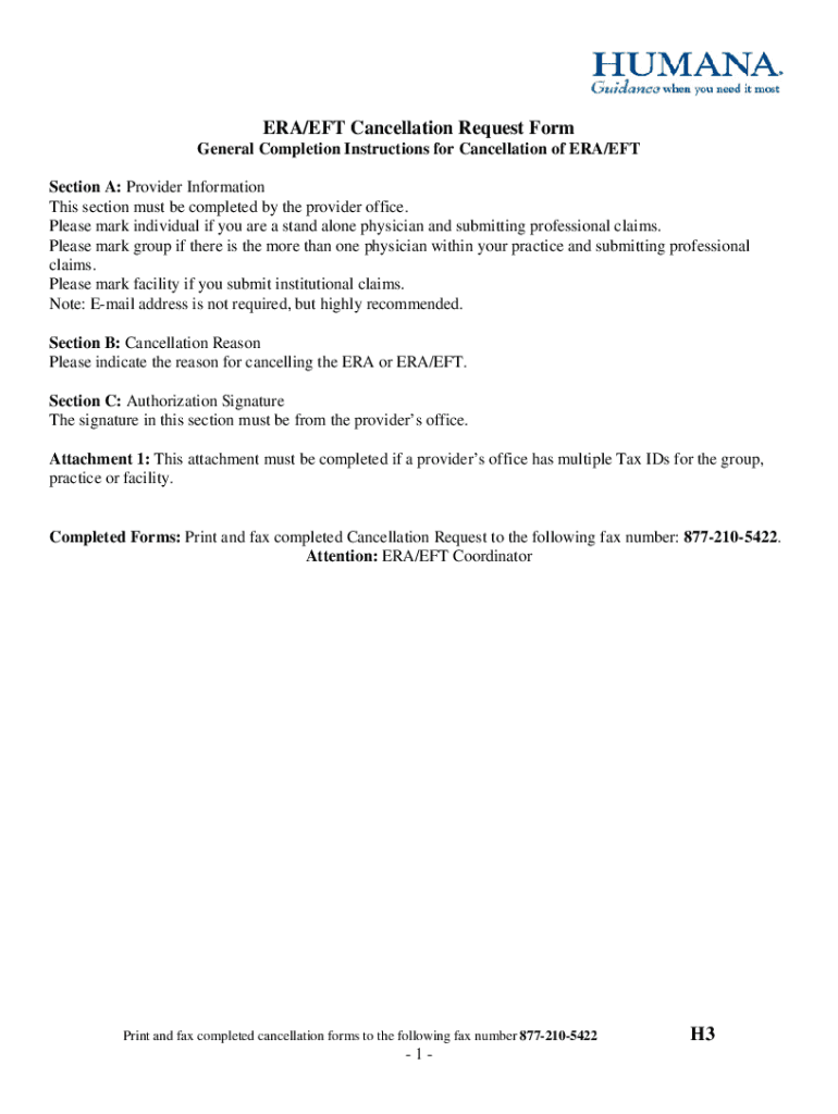 ERA/EFT Cancellation Request Form General Completion Instructions for Cancellation of ERA/EFT Section A: Provider Information This section must be completed by the provider office. Please mark individual