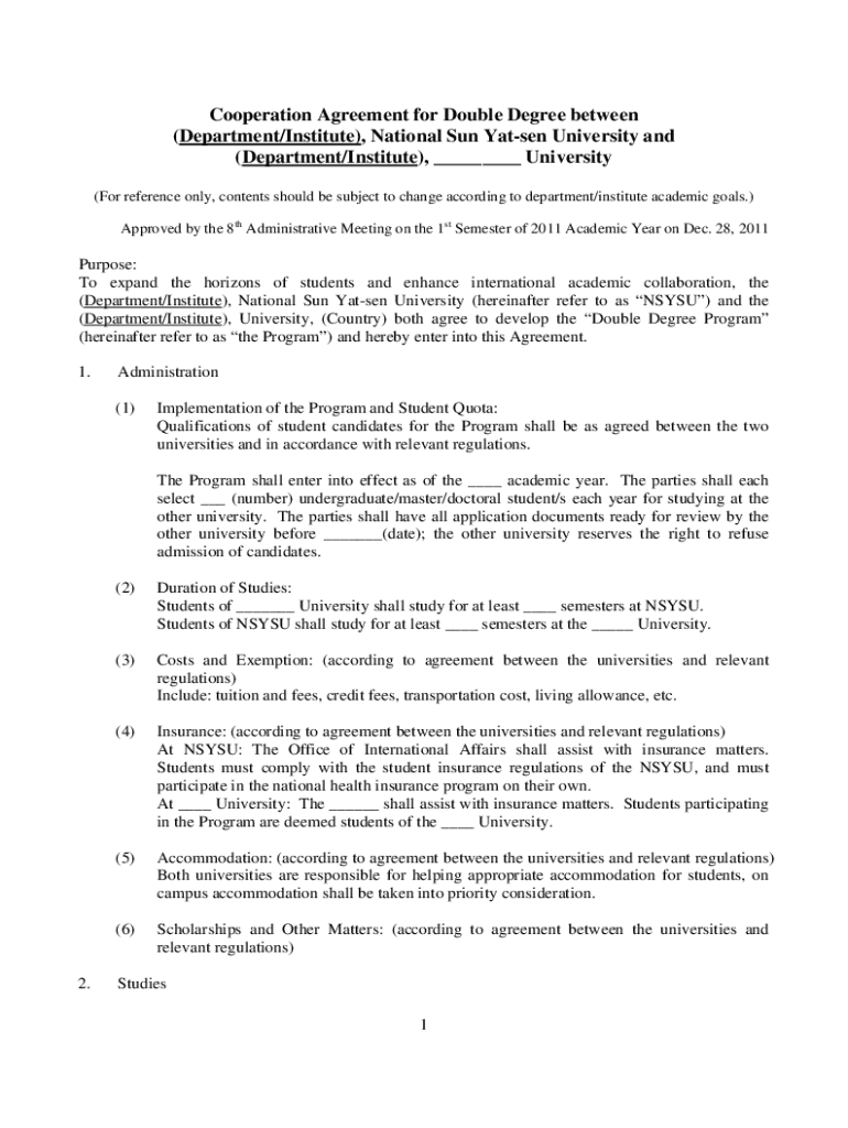 Get the free rpa67.nsysu.edu.twvarfileCooperation Agreement for Double Degree between Department ...