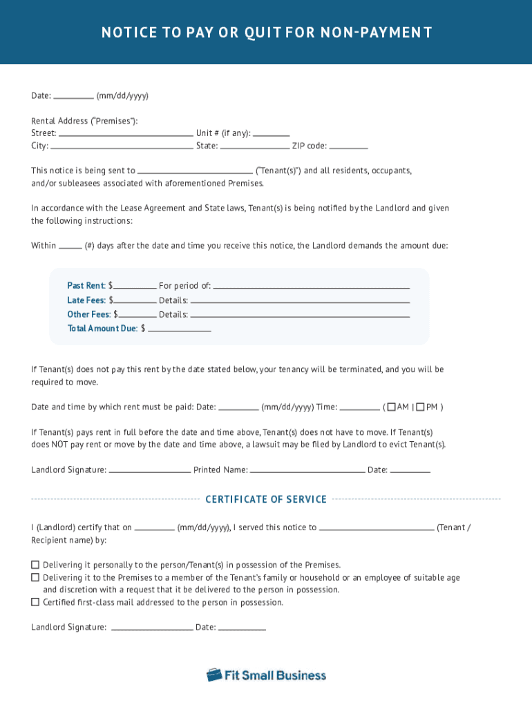 Get the free NOTICE TO PAY OR QUIT FOR NON-PAYMENT Fit Small Business