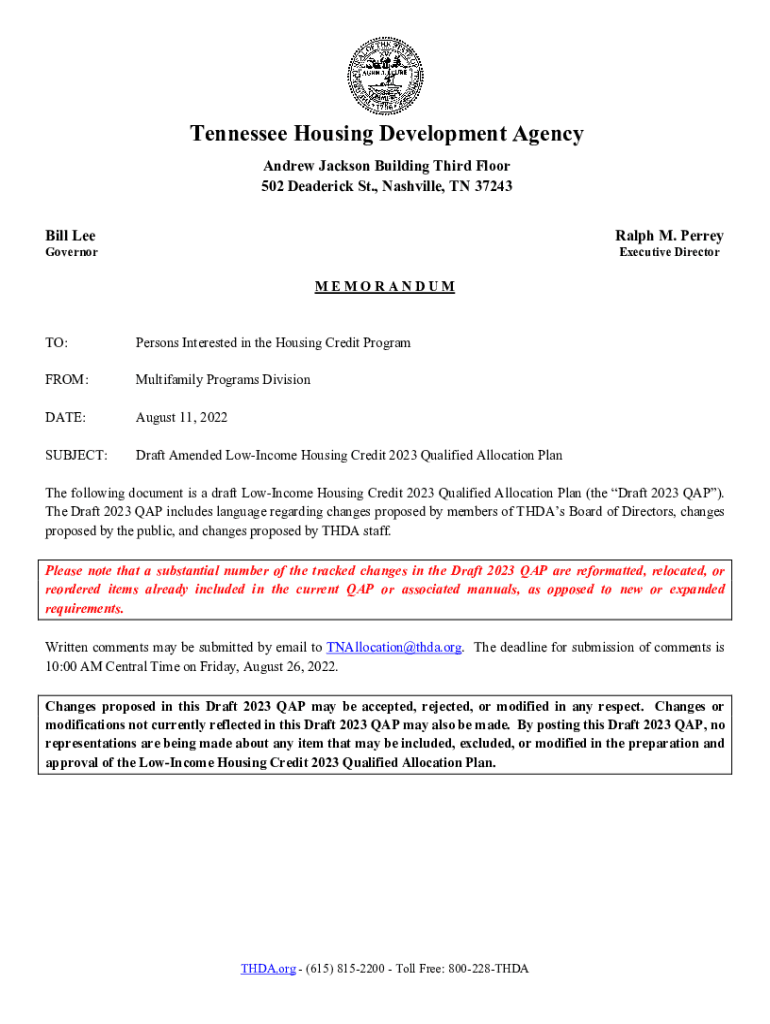 Tennessee Housing Development Agency Andrew Jackson Building Third Floor 502 Frederick St., Nashville, TN 37243 Bill Lee Ralph M. PerreyGovernorExecutive DirectorMEMORANDUMTO:Persons Interested in