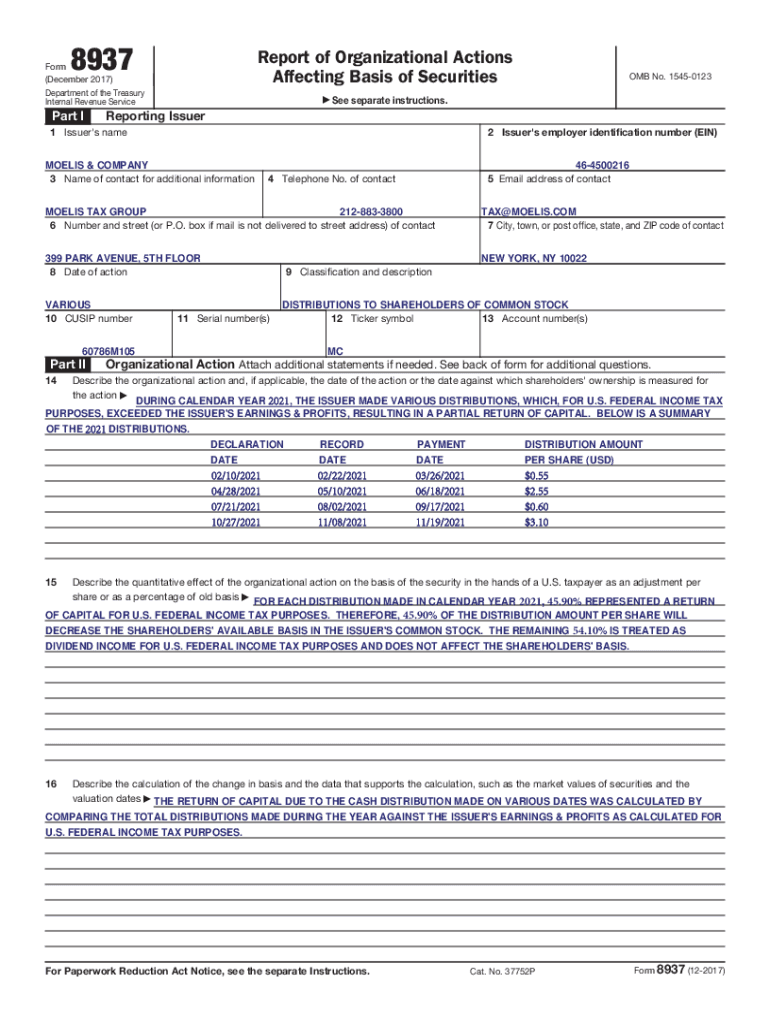 8937Report of Organizational Actions Affecting Basis of SecuritiesForm (December 2017) Department of the Treasury Internal Revenue Serviceman Ia See OMB No. 15450123separate instructions. Reporting