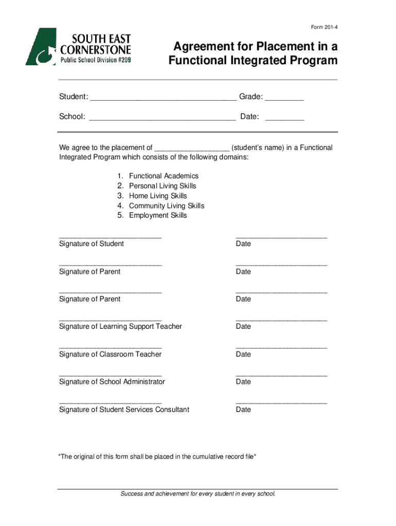 Form 2014Agreement for Placement in a Functional Integrated Program Student: ___ Grade: ___ School: ___ Date: ___We agree to the placement of ___ (students name) in a Functional Integrated Program