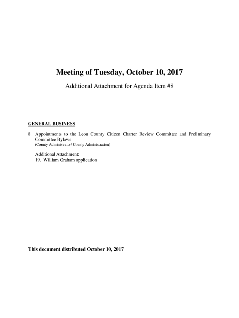 Meeting of Tuesday, October 10, 2017, Additional Attachment for Agenda Item #8GENERAL BUSINESS 8. Appointments to the Leon County Citizen Charter Review Committee and Preliminary Committee Bylaws