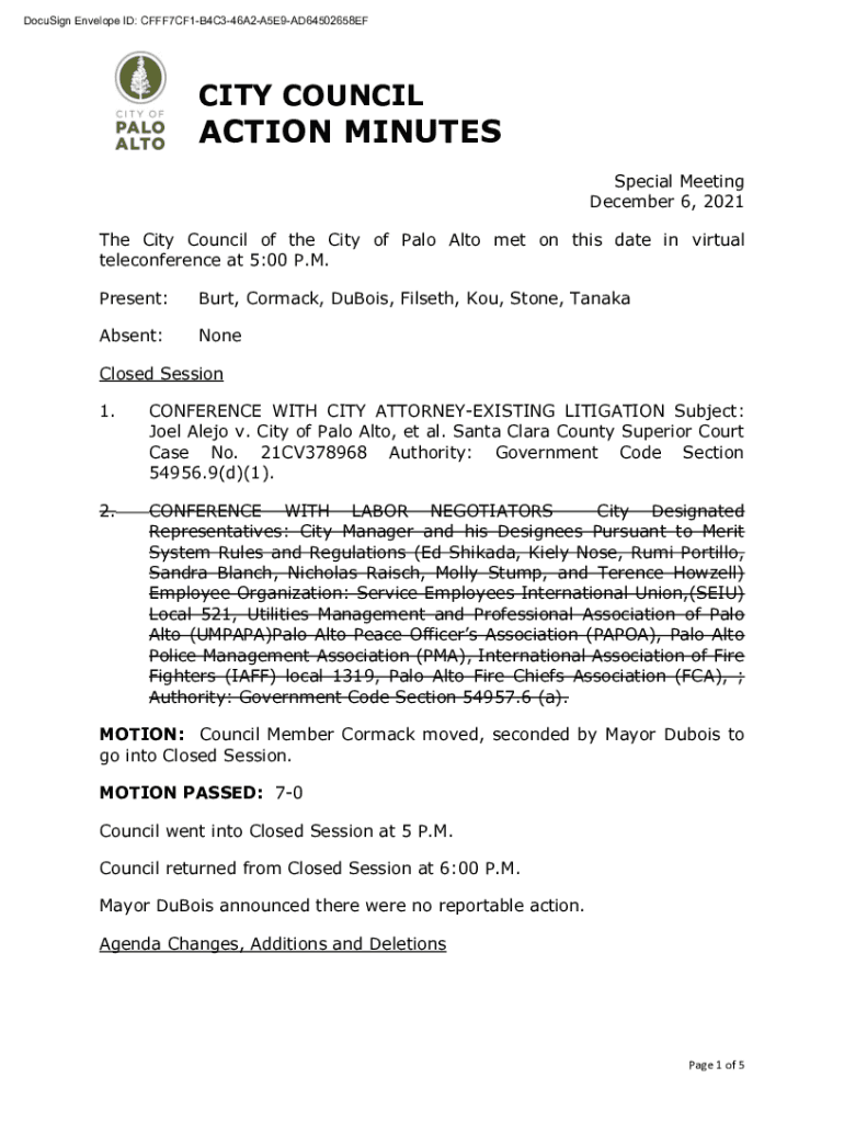 DocuSign Envelope ID: CFFF7CF1B4C346A2A5E9AD64502658EFCITY CONCILIATION MINUTES Special Meeting December 6, 2021, The City Council of the City of Palo Alto met on this date in virtual teleconference