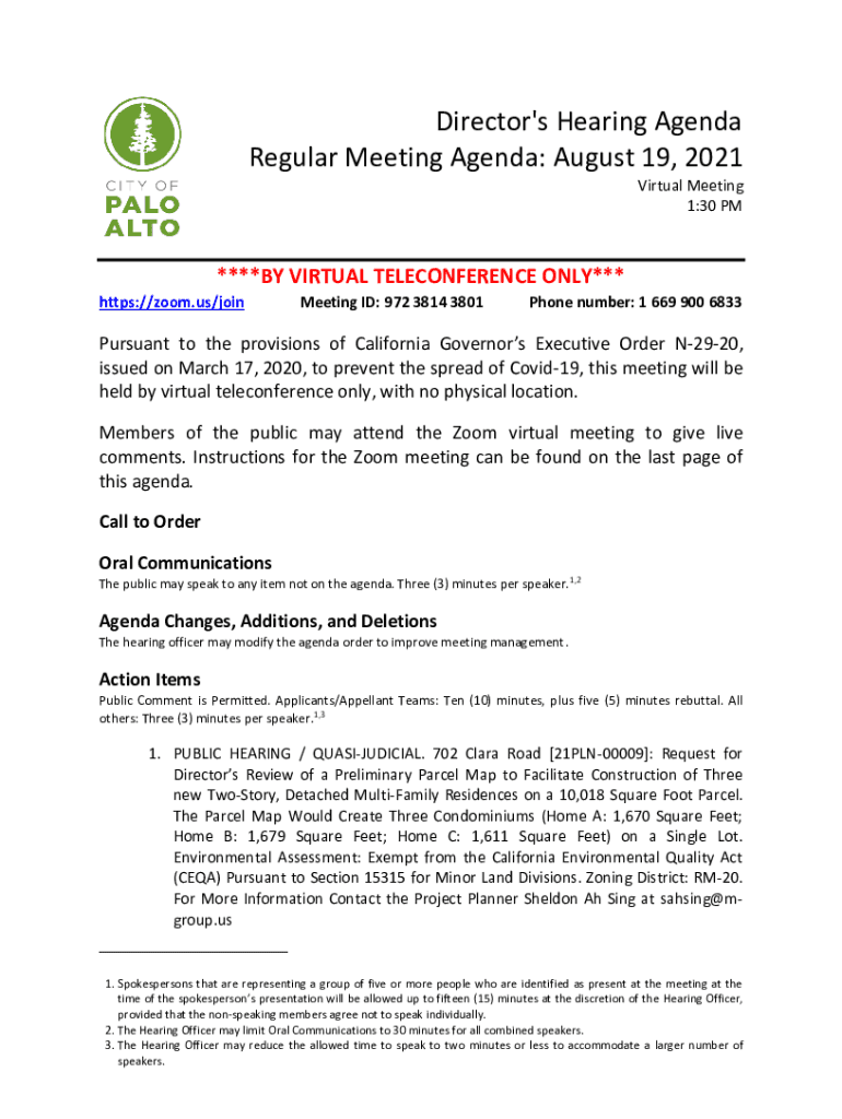 Get the free Director's Hearing Agenda - Palo Alto, California