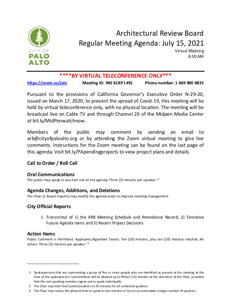 Get the free Agenda - Thursday, July 15, 2021 - City of Palo Alto