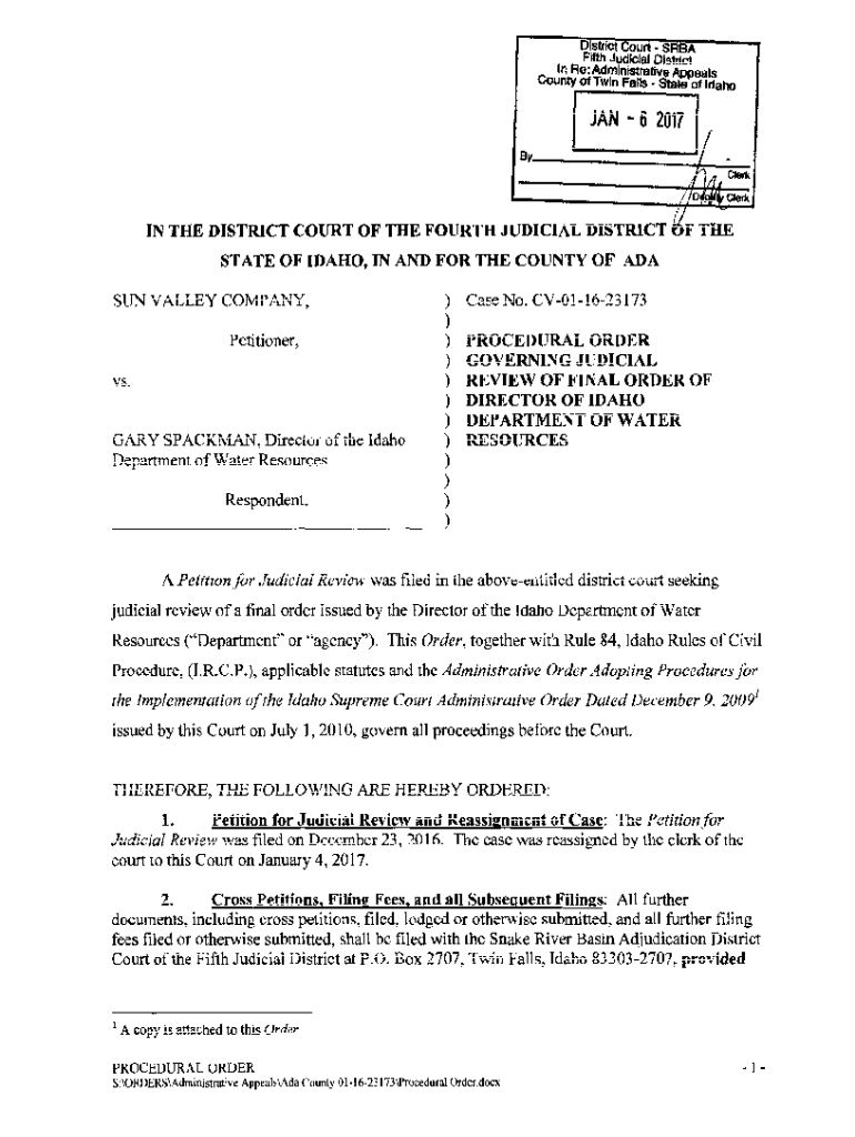 Get the free Procedural Order Governing Judicial Review of Final Order of ... - idwr idaho