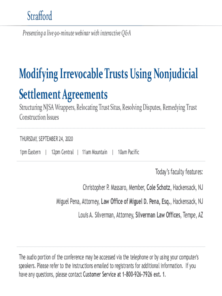 Presenting a live 90minute webinar with interactive Modifying Irrevocable Trusts Using Nonjudicial Settlement Agreements Structuring NASA Wrappers, Relocating Trust Sites, Resolving Disputes, Remedying