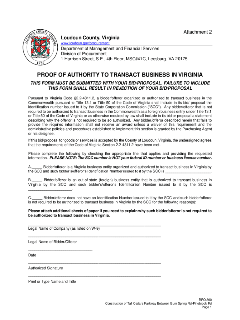 Attachment 2 Loudoun County, Virginia www.loudoun.gov/procurementDepartment of Management and Financial Services Division of Procurement 1 Harrison Street, S.E., 4th Floor, MSC#41C, Leesburg, VA 20175PROOF