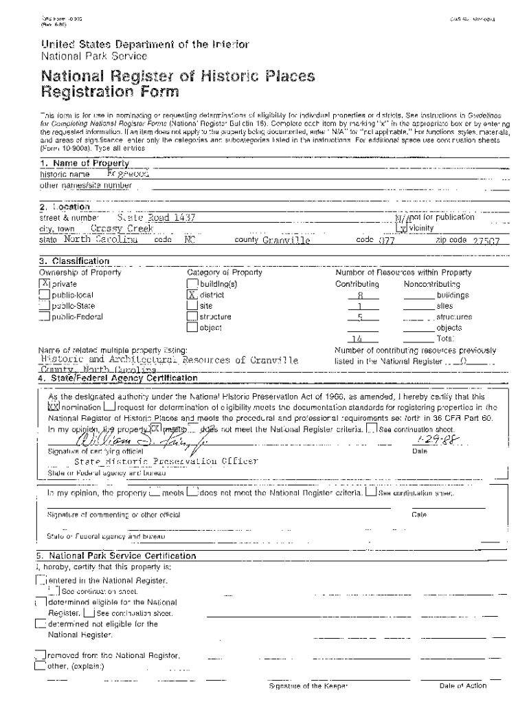 DPS Form 10900 (Rev. 886)OMB No. I024)()18U National Park Services form is for use in nominating or requesting determinations of eligibility for individual properties or districts. See instructions