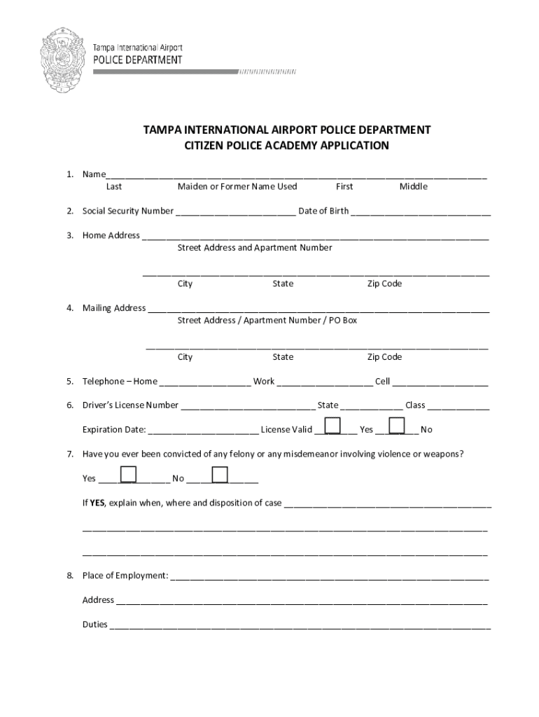 Get the free Tampa Police Department's Citizens AcademyCity of TampaAirport PoliceTampa Internati...