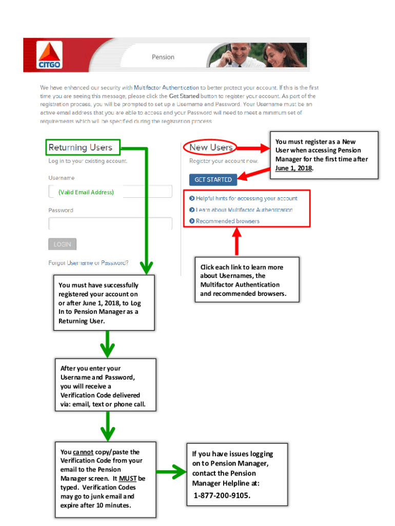 You must register as a New User when accessing Pension Manager for the first time after June 1, 2018. (Valid Email Address)You must have successfully registered your account on or after June 1, 2018,