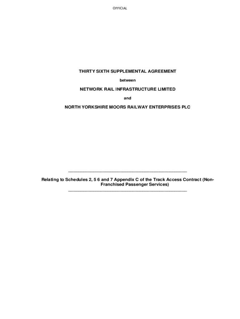 OFFICIALTHIRTY SIXTH SUPPLEMENTAL AGREEMENT betweenNETWORK RAIL INFRASTRUCTURE LIMITED north YORKSHIRE MOORS RAILWAY ENTERPRISES PLC___ Relating to Schedules 2, 5 6 and 7 Appendix C of the Track Access