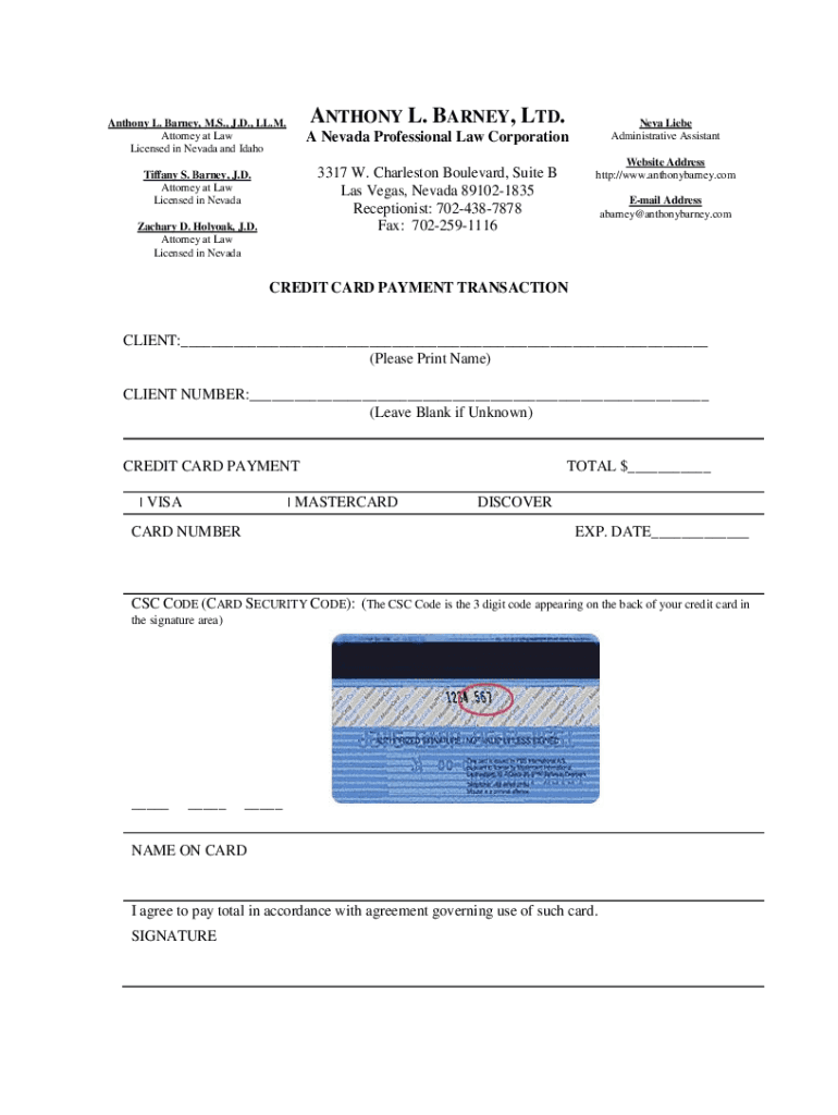 ANTHONY L. BARNEY, LTD. Anthony L. Barney, M.S., J.D., LL.M. Attorney at Law Licensed in Nevada and Idaho Neva Liege Administrative Assistant Nevada Professional Law CorporationWebsite Address http://www.anthonybarney.com3317