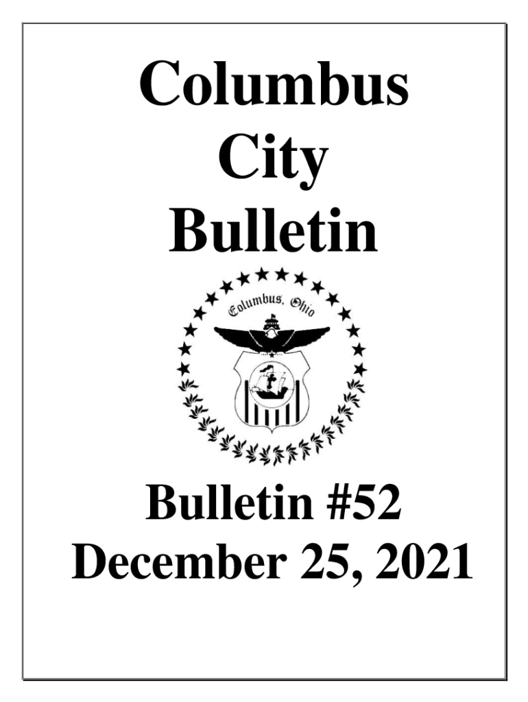 Columbus City BulletinBulletin #52 December 25, 2021Proceedings of City Council Saturday, December 25, 2021SIGNING OF LEGISLATION (Note: There was no City Council meeting on Monday, December 20, 2021;