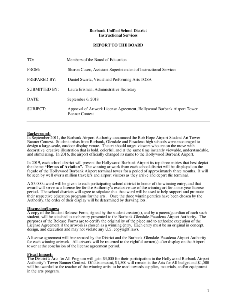 Burbank Unified School District Instructional Services REPORT TO THE BOARD TO:Members of the Board of EducationFROM:Sharon Cusco, Assistant Superintendent of Instructional ServicesPREPARED BY:Daniel