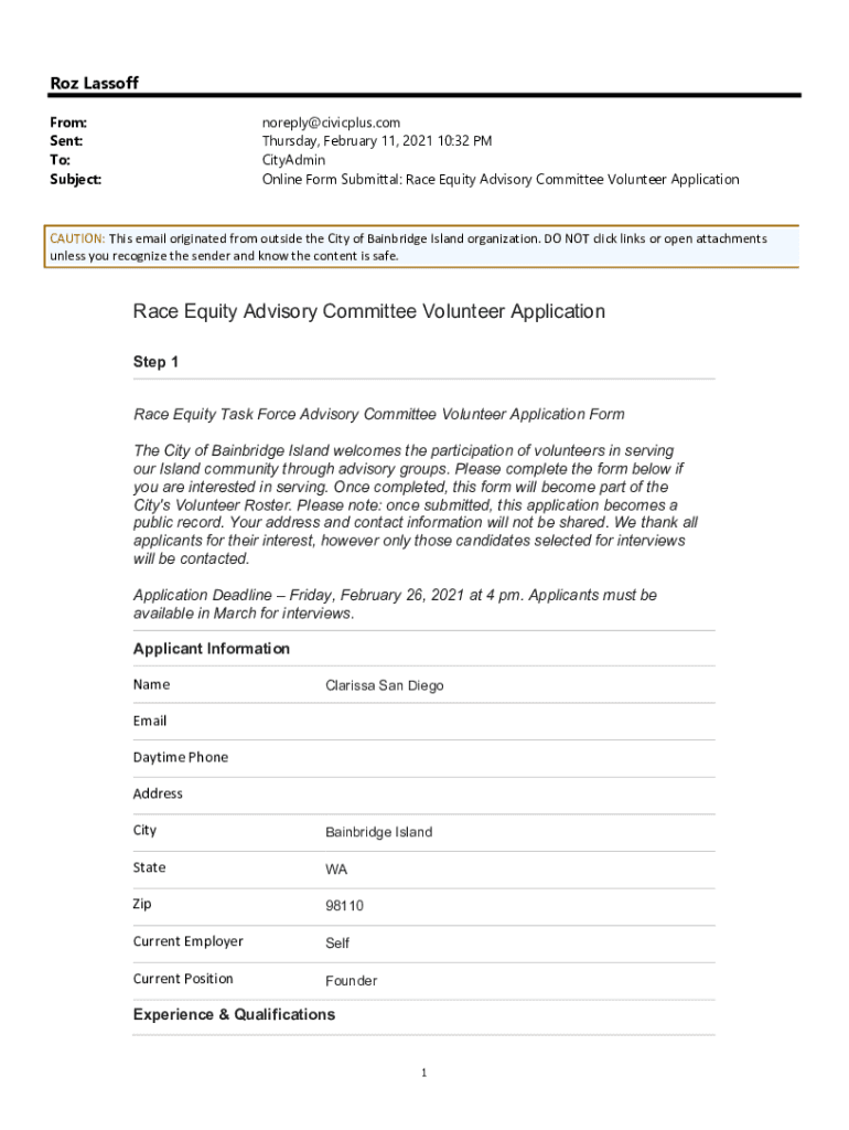 Get the free Race Equity Advisory Committee Volunteer Application