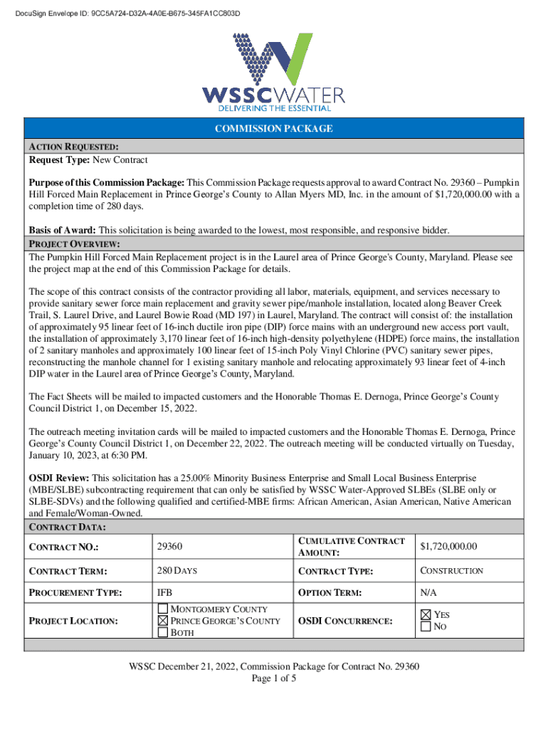 Get the free Purpose of this Commission Package: This Commission Package requests approval to awa...