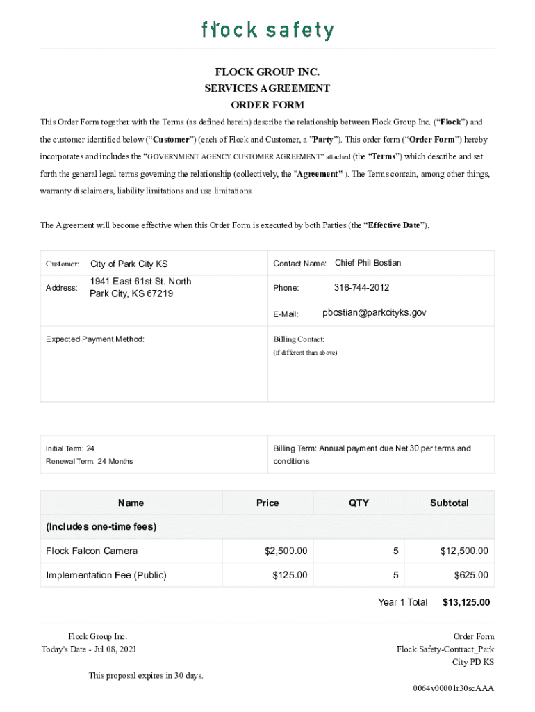 Get the free FLOCK GROUP INC. SERVICES AGREEMENT ORDER FORMLaw Insider