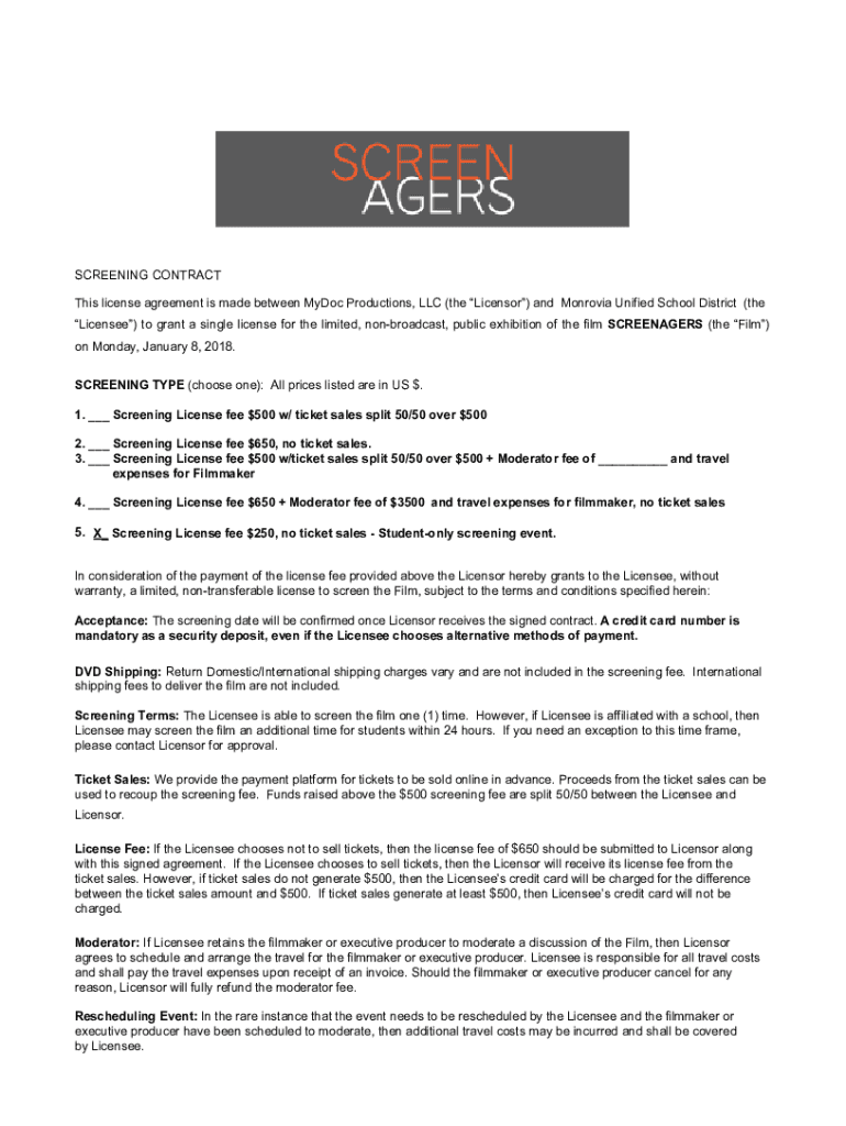 Get the free SCREENING CONTRACT This license agreement is made ...