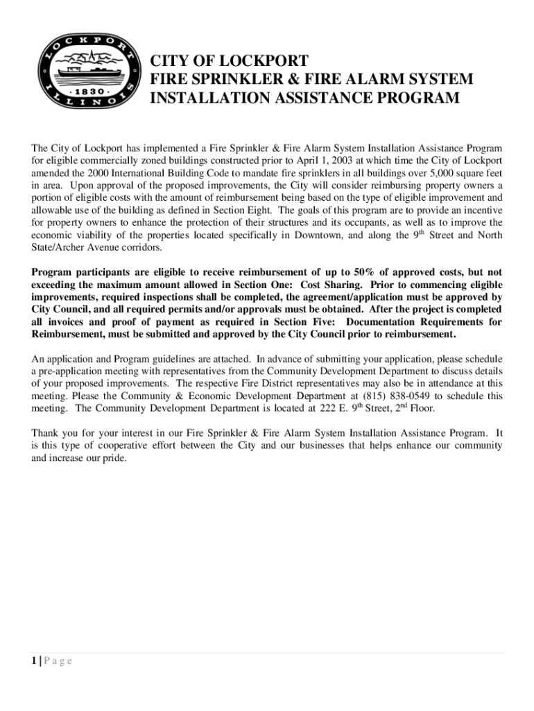CITY OF ROCKPORT FIRE SPRINKLER & FIRE ALARM SYSTEM INSTALLATION ASSISTANCE PROGRAM The City of Lock port has implemented a Fire Sprinkler & Fire Alarm System Installation Assistance Program for eligible