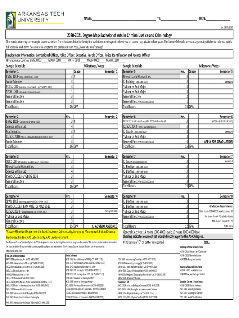 Rev. 02/07/202020202021 Degree Bachelor of Arts in Criminal Justice and CriminologyThis map is a terabytes sample course schedule. The milestones listed to the right of each