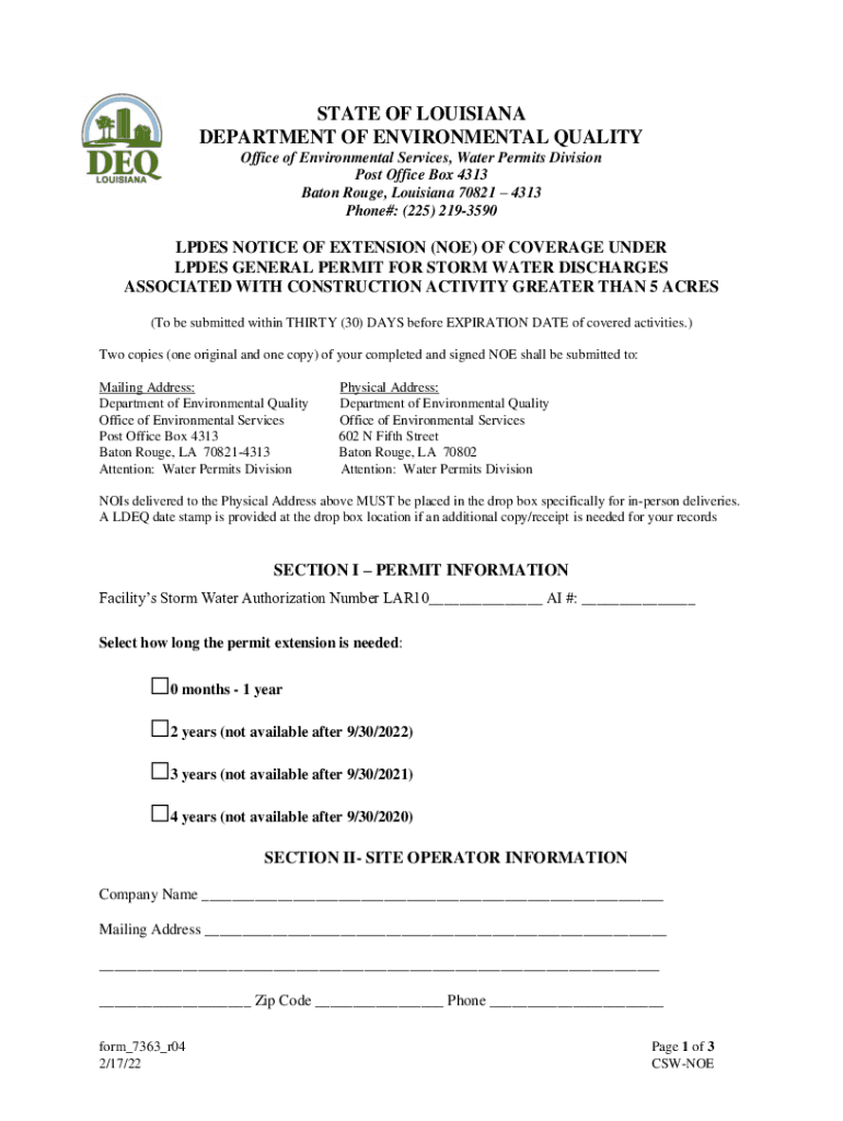 Get the free NOE-G.pdf - Louisiana Department of Environmental Quality - deq louisiana