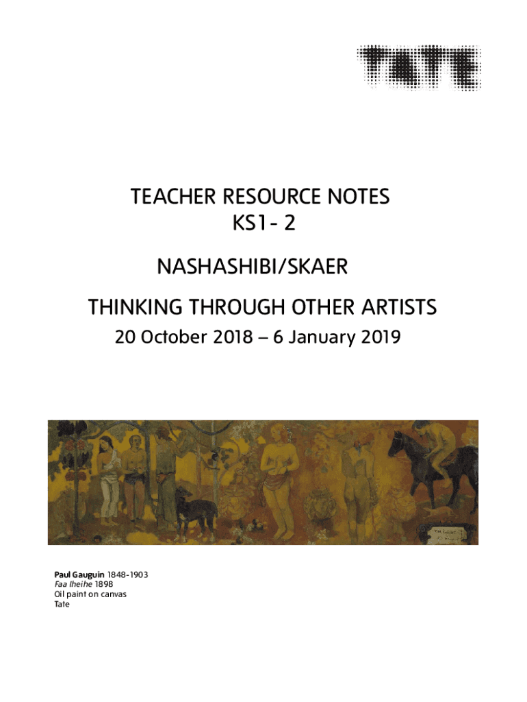 TEACHER RESOURCE NOTES KS1 2 NASHASHIBI/SKATER THINKING THROUGH OTHER ARTISTS 20 October 2018 6 January 2019Paul Gauguin 18481903 FAA Head 1898 Oil paint on canvas The Latest IVES AND ITS LEGACY For