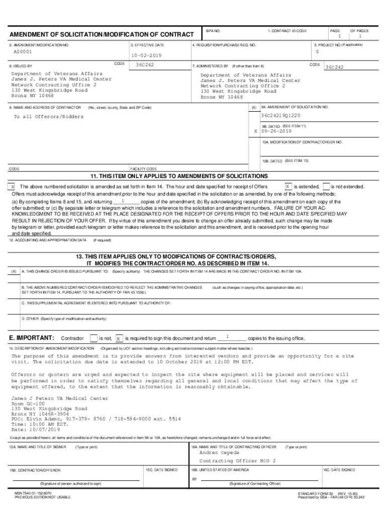 BPA NO.AMENDMENT OF SOLICITATION/MODIFICATION OF CONTRACT 2. AMENDMENT/MODIFICATION NO.3. EFFECTIVE DATEA000011. CONTRACT ID CODECODE36C24215. PROJECT NO.(If applicable)4. REQUISITION/PURCHASE REQ.