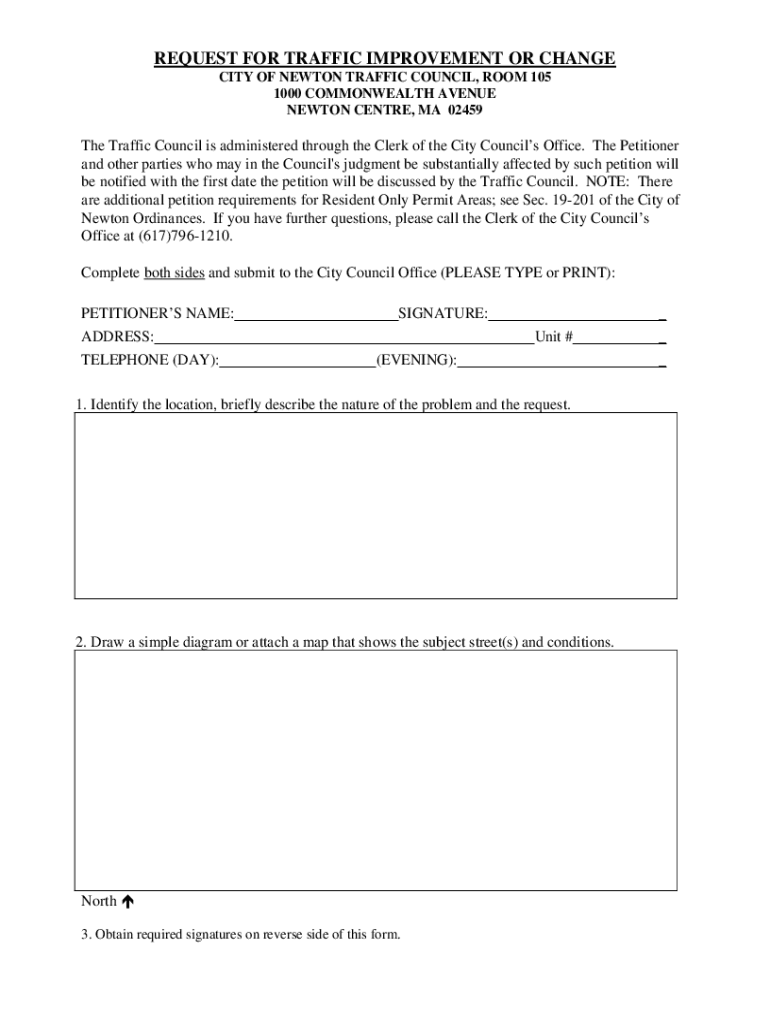 Get the free REQUEST FOR TRAFFIC IMPROVEMENT OR CHANGE - Newton, MA