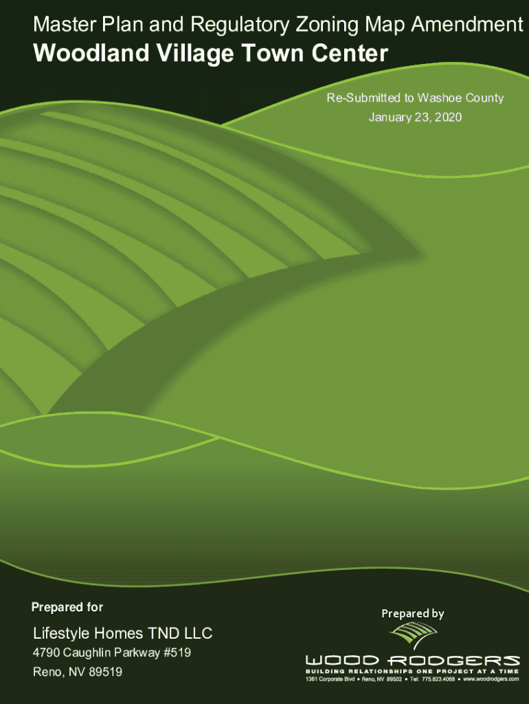 Master Plan and Regulatory Zoning Map Amendment Woodland Village Town Center Resubmitted to Washoe County January 23, 2020Prepared lifestyle Homes TND LLC 4790 Coughlin Parkway #519 Reno, NV 89519Prepared